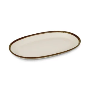 ARENA CREMA BORDE MARRON FUENTE OVALADA 25,5X14,5CM