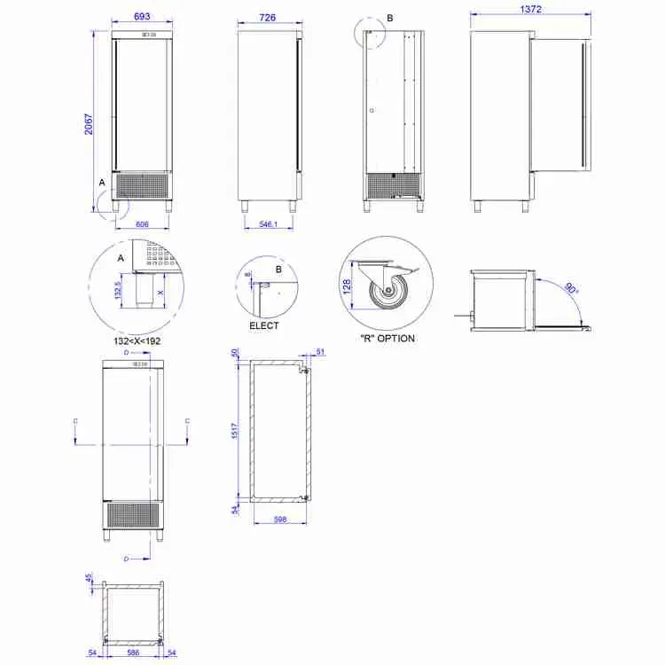 - Estantes interiores de varillas plastificadas, fácilmente desmontables para su limpieza.