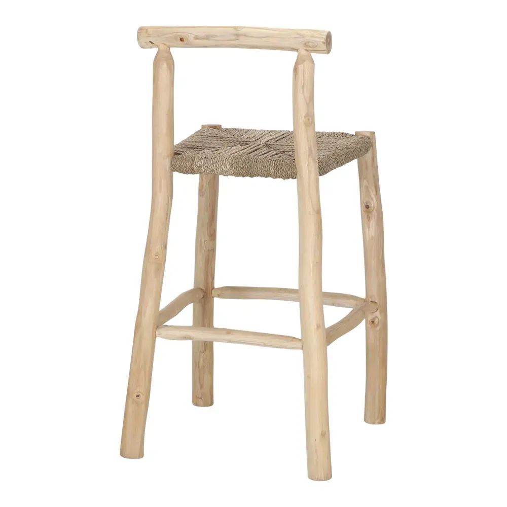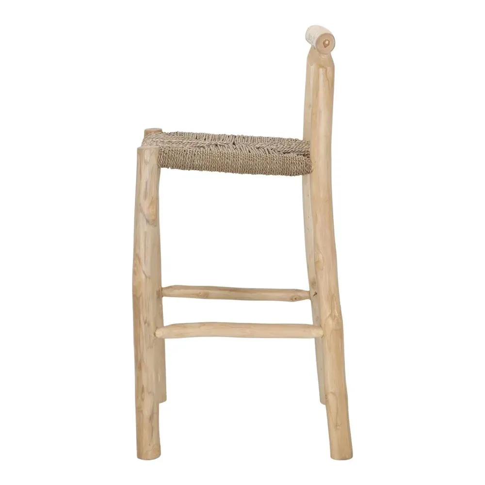 | Taburete alto de madera y fibra Sidonia, de estilo Mediterráneo. Estructura de madera tropical. Asiento en fibra marina trenzada. No válido para exterior. Medidas: 51x51x101 cm | Altura del asiento: 73 cm |