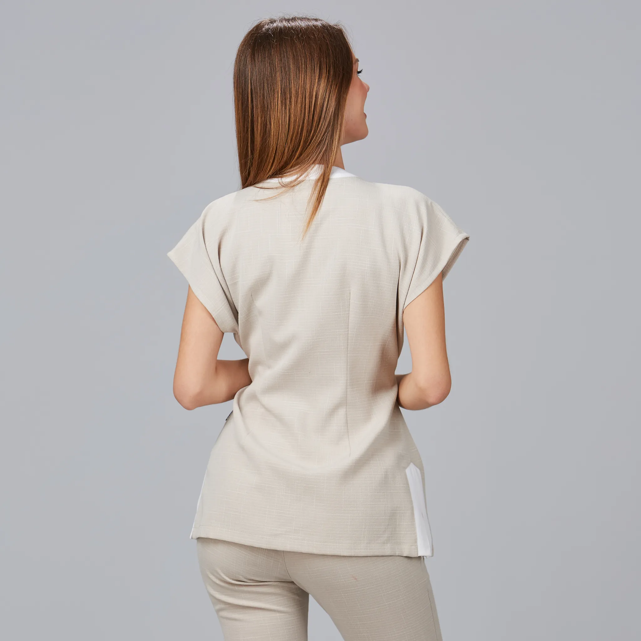 Descubre la distinción y comodidad de la BLUSA MUJER LOTO X.LINEN, una prenda diseñada para profesionales de la peluquería y la estética que desean destacar en su ámbito laboral. Esta blusa de manga corta con cuello de pico presenta un diseño elegante, con bolsillos funcionales y aberturas laterales que aportan un toque de sofisticación.
