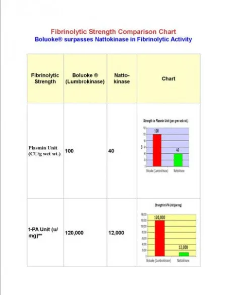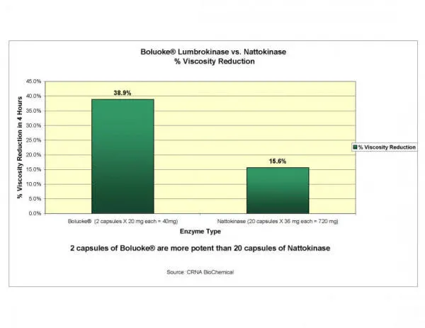 Boluoke Lumbrokinasa es la única enzima oral totalmente investigada que apoya el proceso de coagulación de la sangre. La Lumbrokinase es una enzima más poderosa que la nattokinasa. Es compatible con Coumadin® o heparina.