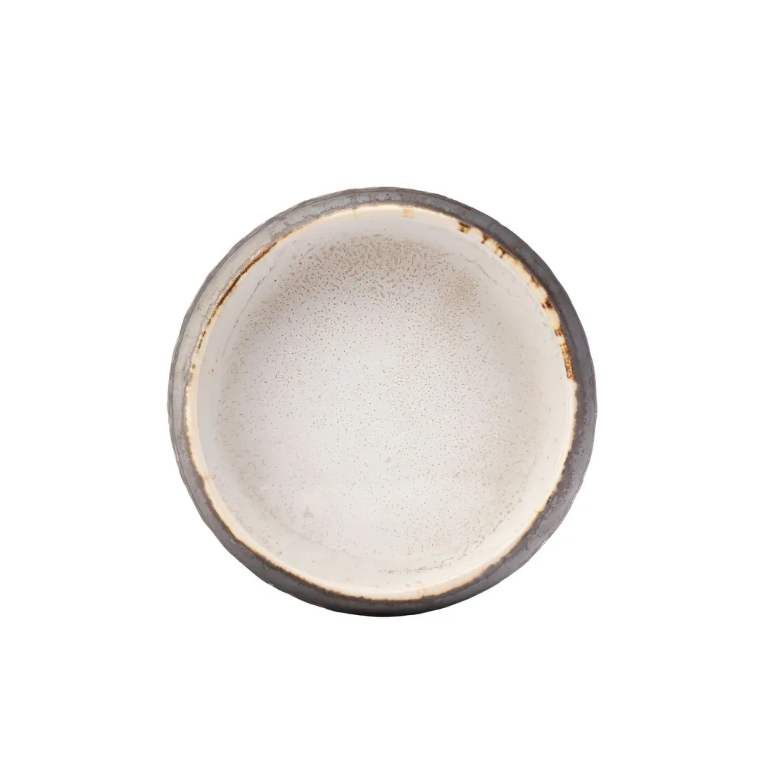 El Cartago Caliza Plato 14 cm es una pieza excepcionalmente diseñada que destaca por su acabado de piedra natural en tonos intensos, con un exterior oscuro que resalta los detalles metálicos aplicados a mano. Cada pieza tiene un patrón geométrico sutilmente grabado que le otorga una estética única, lo que convierte a este plato en una opción perfecta para presentaciones dramáticas.