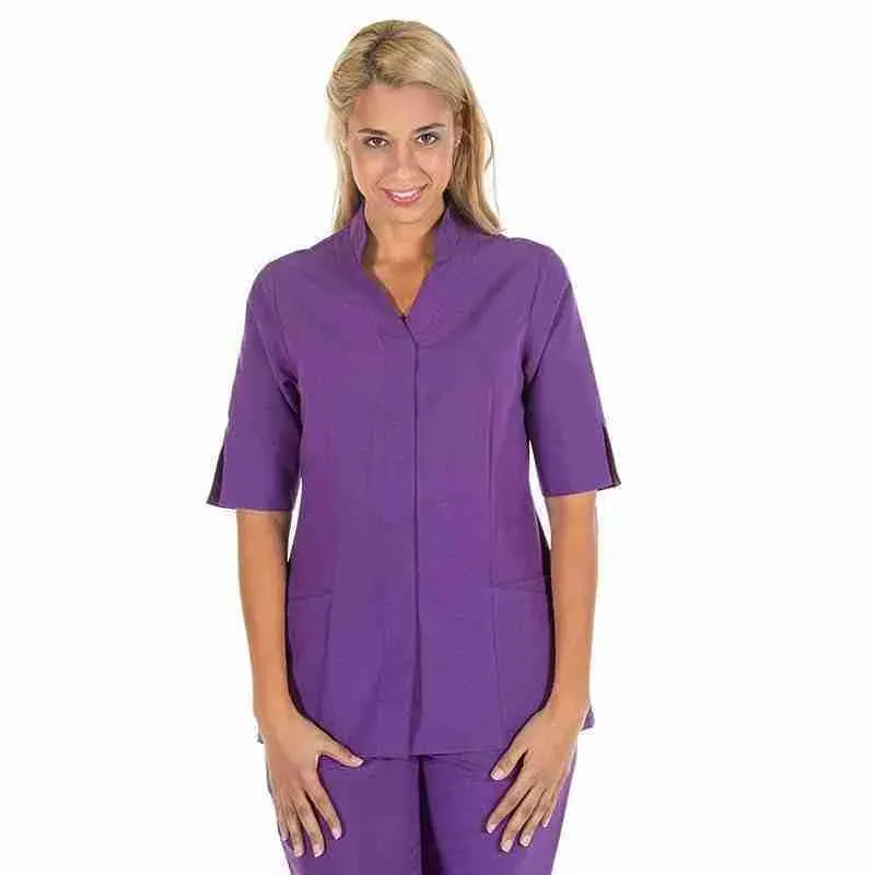 Casaca de mujer de manga corta con abertura.