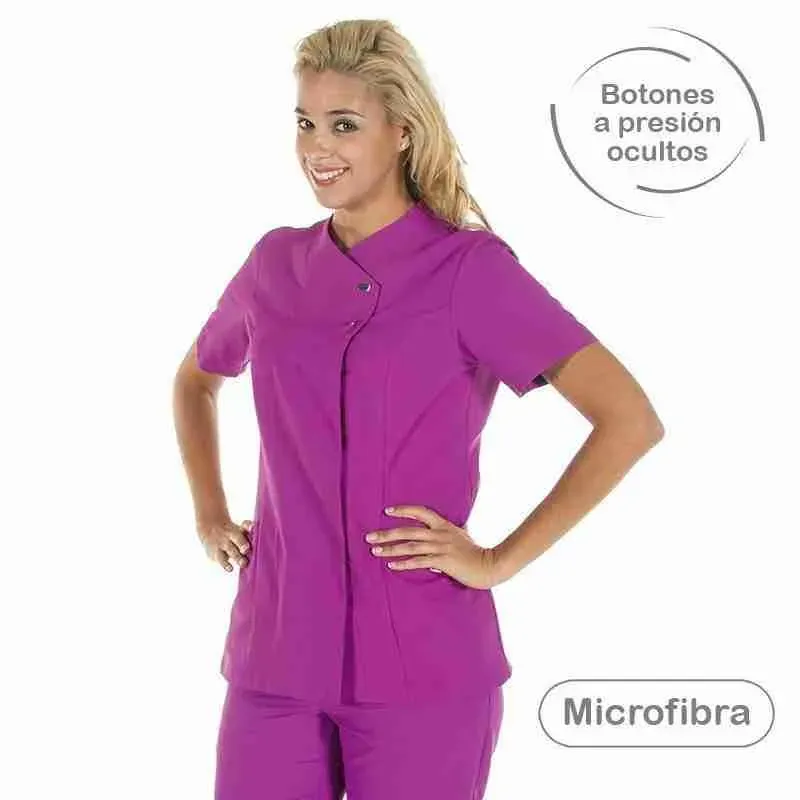 Botones de presión ocultos, dos bolsillos laterales, pinzas en espalda y costadillos en delantero.