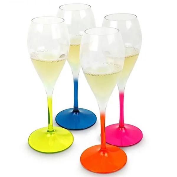 La marca Pulltex ha creado este pack de 4 copas con la base de diferentes y llamativos colores (Champagne Pool Plastic Glasses), perfectas para ayudar a identificar fácilmente cuál es tu bebida en una fiesta. Están fabricadas con plástico de alta densidad resistente a los golpes, por lo que se trata de unas copas duraderas. Además, son ideales para las fiestas o celebraciones en una piscina, ya que si se mojan o se caen no se dañan y no se rompen en trozos pequeños.
