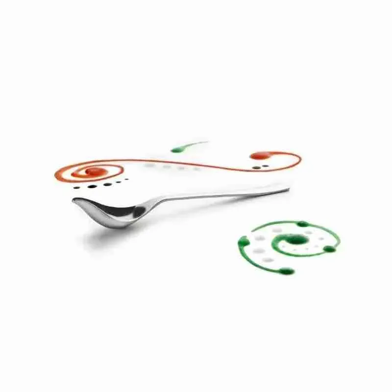 Cuchara pluma para decorar platos fabricada en acero inox.