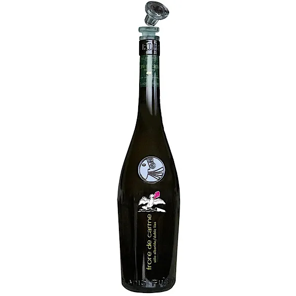 Elaborado por el bodeguero Eladio Piñeiro en pleno corazón de Galicia, el vino blanco Albariño Frore de Carme Reserva Doble Lías es un vino singular que no solamente destaca por sus aromas y sabores (conseguidos gracias a un especial proceso de elaboración), sino también por su particular embotellado. El diseño de la botella pretende representar un ánfora, lo que nos transmite que se trata de un vino artesanal y comprometido con la tradición. También su tapón es muy particular, ya que se trata de un tapón de cristal hermético que no solamente da presencia a la botella, sino que ayuda a mantener las propiedades del caldo durante más tiempo. En cuanto a la etiqueta, esta es termosensible, lo que hace que cambie de color en función de la temperatura a la que se encuentra el vino.