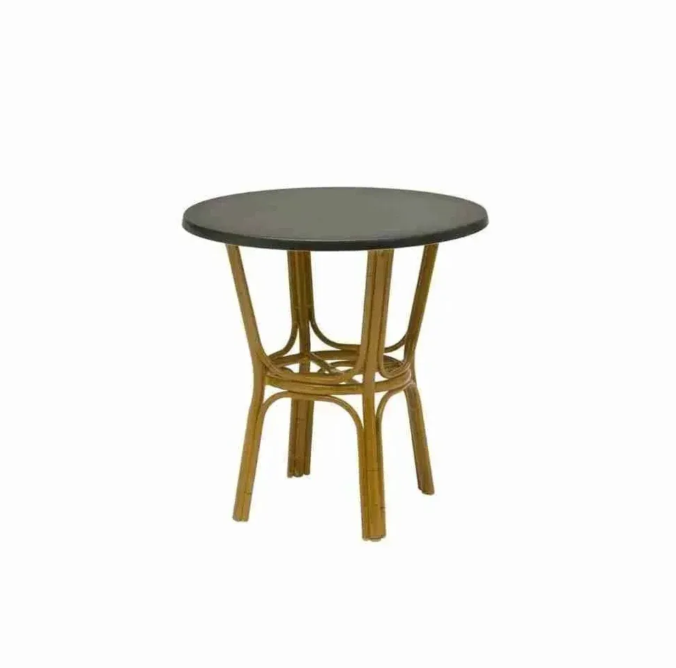 MAUI MESA PATAS BAMBU CON TABLERO REDONDO TOP TEXTURA NEGRO Ø70X H75CM