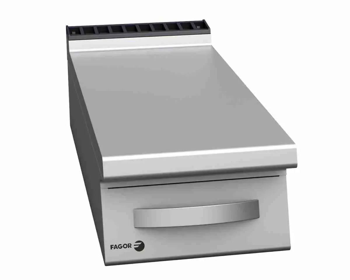 – Encimera fabricada en acero inoxidable AISI-304 de 2 mm de espesor.