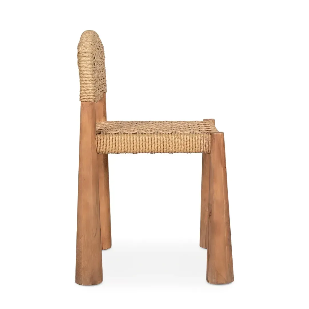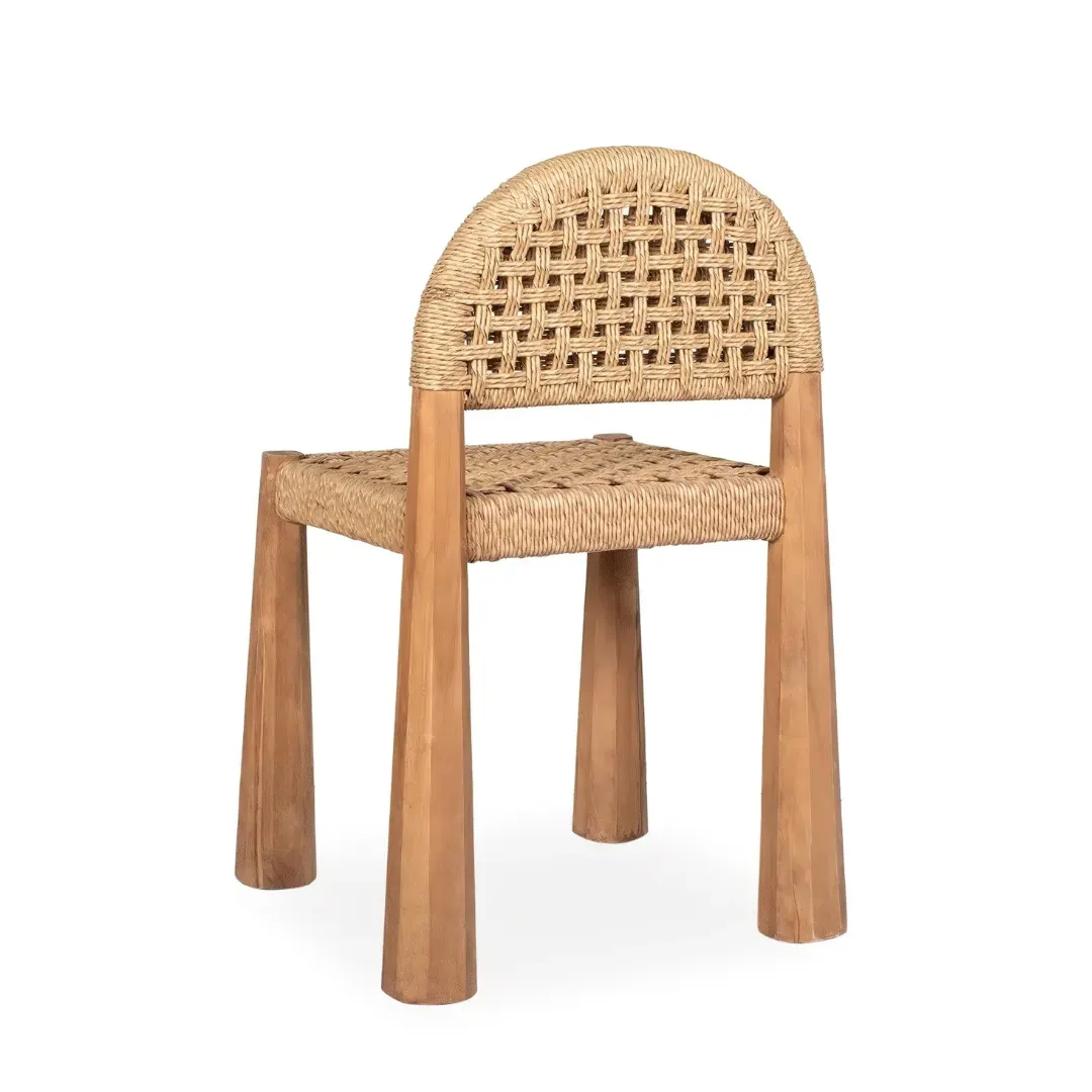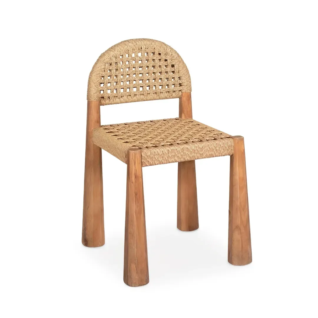 Silla Neta de estilo étnico, fabricado en madera de teka en color marrón, combinado con enea.