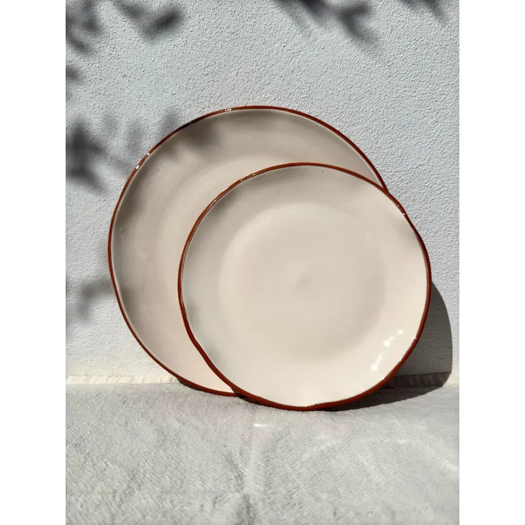 Vajilla fabricada de maneras artesanal a mano , tanto la forma como el pintado se hacen con técnicas manuales, cocido en altas temperaturas para conseguir su gran resistencia y estetica con formas orgánicas hacen que sea un plato único e inigualable.