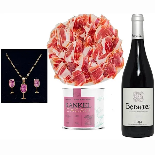 Azúcar, pasta de cacao, manteca de cacao, leche en polvo, vino tinto DOCª Rioja Variedad Tempranillo (contiene sulfitos), antocianos, lecitina de soja y vainilla. Conservar en un lugar fresco y seco.