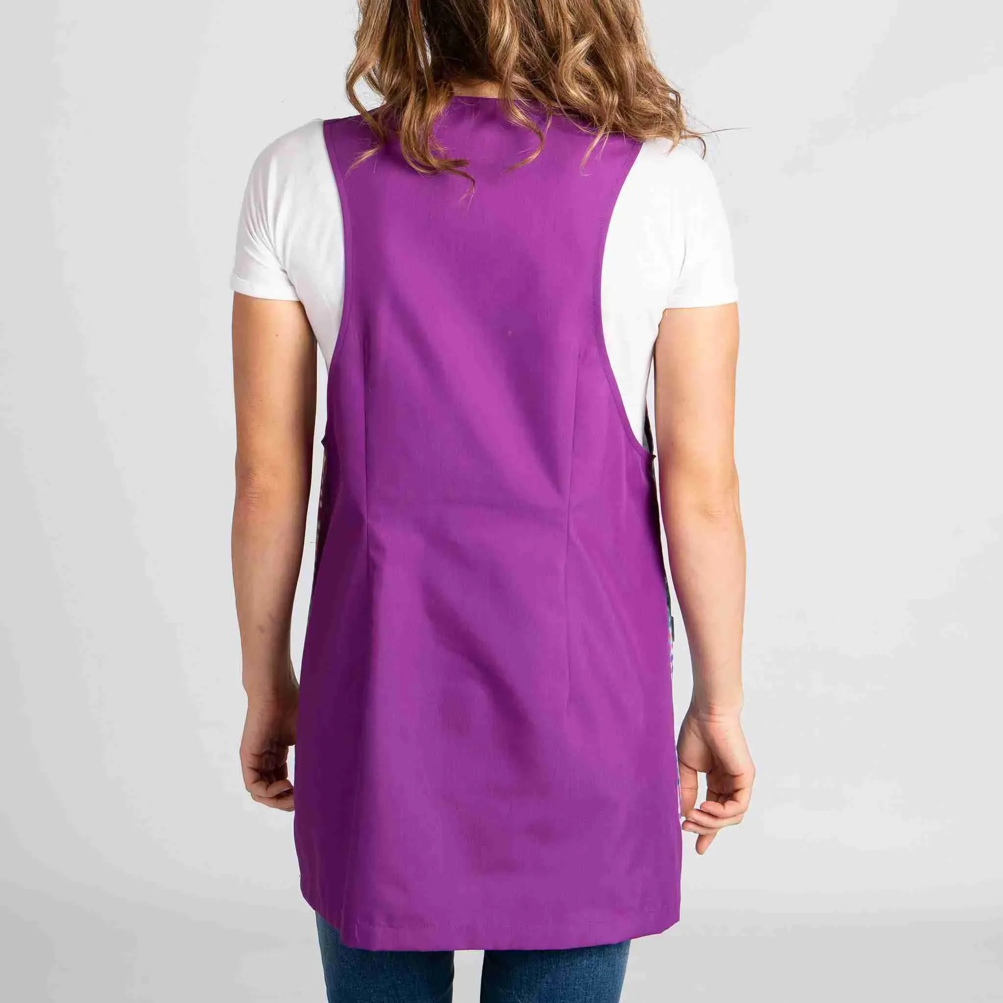 Color malva, un bolsillo lateral. Pinza en sisa y espalda.