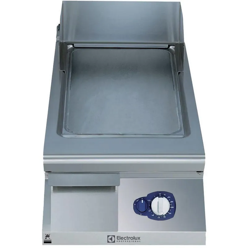– Superficie de cocción lisa de cromo cepillado. – Quemadores a gas de 10 kW con válvula termostática y llama autoestabilizada. – Rango de temperatura hasta 270°C. – Para instalar en instalaciones de base abierta, puentes de soporte o sistemas en Sbalzo. – Cajón extraíble debajo de la superficie de cocción para la recolección de grasas. – Estructura base y parte superior de la unidad completamente en acero inoxidable con acabado Scotch Brite. – superficie de trabajo de resistencia extra en acero inoxidable de 2 mm. – Bordes laterales en ángulo recto para permitir una unión a ras entre las unidades.