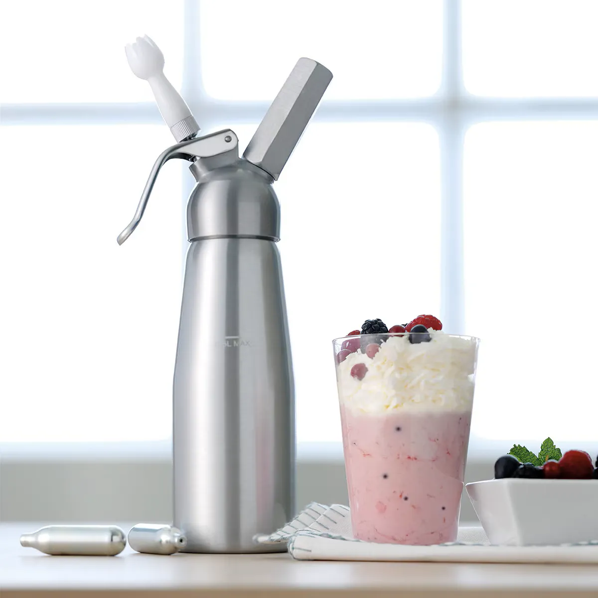 Cuerpo de aluminio, recubrimiento interior sanitariamente garantizado.