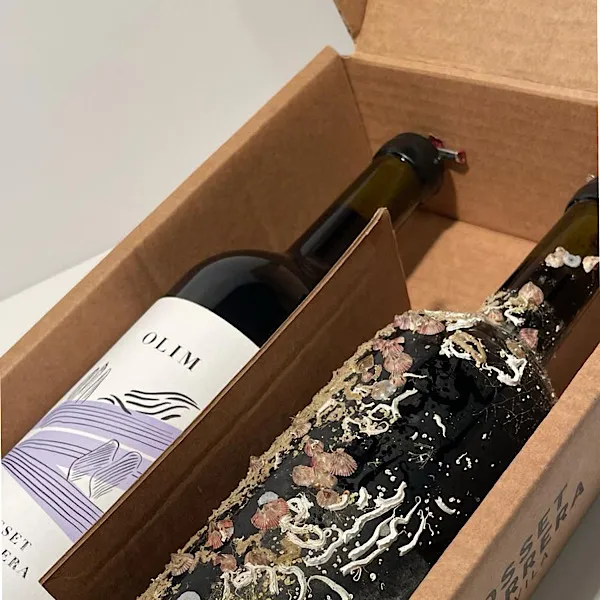 Las dos botellas vienen en una caja de cartón de color kraft. Estos vinos a parte de ser un gran vino y exclusivo también es un gran regalo para sorprender a cualquier amante del vino. Si no tienes ni idea de que regalar para alguien especial estos vinos submarinos son la solución y la respuesta a un gran regalo. Porque el final no es un regalo más, pues a parte de buen vino cada botella de vino submarino es única, no existe ninguna botella igual.
