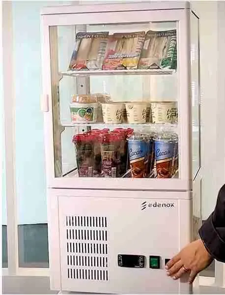 - Sus dimensiones reducidas la hacen una vitrina versátil y ligera, ideal para instalarse en diferentes tipos de instalaciones de servicio rápido, supermercados y restauración.